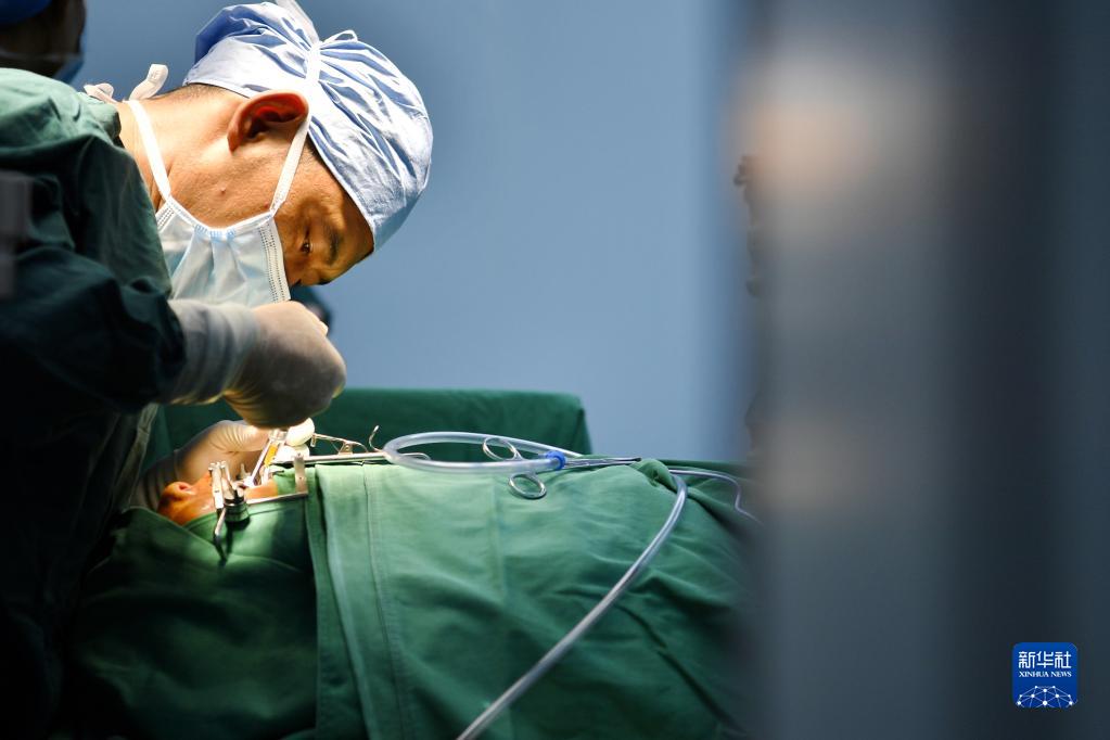 7月29日,在阿里地區(qū)人民醫(yī)院手術室,醫(yī)生為唇腭裂患者做修復手術。新華社記者 張汝鋒 攝