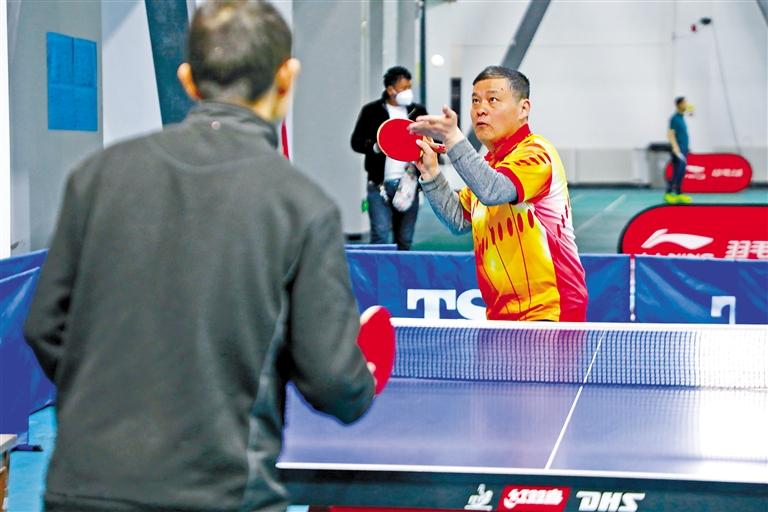 成人男子組在進(jìn)行乒乓球比賽。