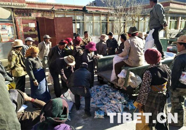 圖為扎西林村村民領(lǐng)取碘鹽