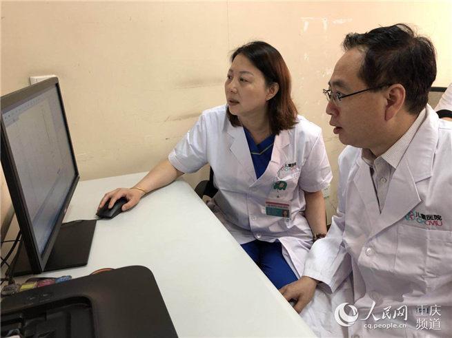重慶醫(yī)科大學附屬兒童醫(yī)院心電生理診斷中心,專家實時分析央措的心電圖報告。