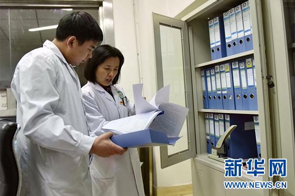 與同事查閱資料。新華網(wǎng)發(fā)(昌都市人民醫(yī)院供圖)