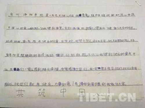 澤旺卓瑪,一名先天性心臟病患者,曾在中央統(tǒng)戰(zhàn)部和“同心o共鑄中國(guó)心”公益項(xiàng)目的愛(ài)心救助下得到康復(fù)。為感謝曾救助她的人,她寫(xiě)了一封感謝信……