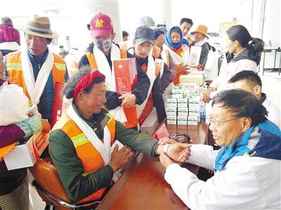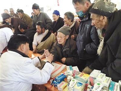 2017年6月,那曲惠民醫(yī)院組織醫(yī)護(hù)人員在那曲敬老院義診。 謝偉 王曉莉 攝