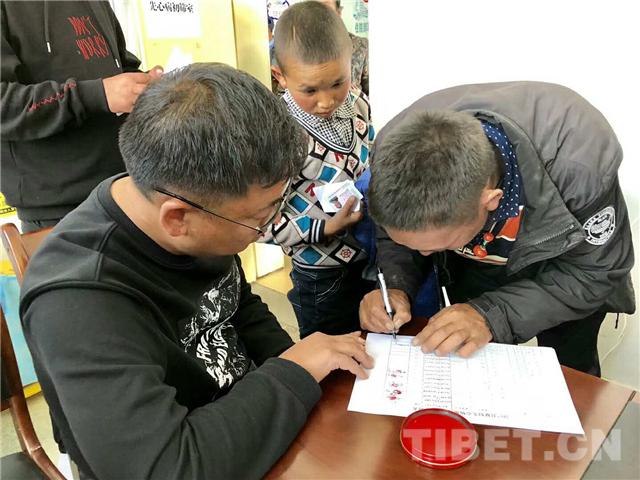 圖為扎西達(dá)娃(左)在確篩工作現(xiàn)場