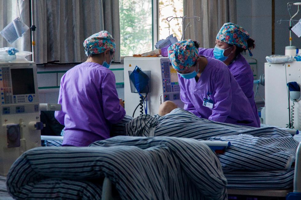 圖為血液透析中心的護(hù)士們?cè)跒椴∪俗o(hù)理。拉薩市人民醫(yī)院血液透析中心成立于2017年3月,采用最先進(jìn)的德國(guó)設(shè)備,現(xiàn)已陸續(xù)開展了血液透析、血液灌流、血液透析濾過等技術(shù),月均透析達(dá)百余人次,目前已完成透析3233人次。