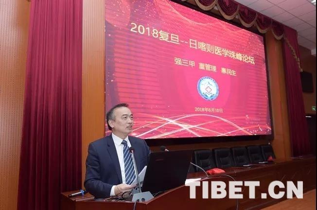 圖為復(fù)旦大學黨委副書記袁正宏出席復(fù)旦-日喀則醫(yī)學高峰論壇并致辭。日喀則市人民醫(yī)院供圖