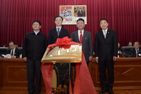 圖為西藏自治區(qū)衛(wèi)生和計(jì)劃生育委員會(huì)黨組成員、副主任胡學(xué)軍,上海市衛(wèi)生和計(jì)劃生育委員會(huì)主任鄔驚雷,西藏自治區(qū)人民政府副主席、日喀則市委書(shū)記張延清,上海市第八批援藏干部聯(lián)絡(luò)組組長(zhǎng)、日喀則市委副書(shū)記、常務(wù)副市長(zhǎng)倪俊南(從左至右)為日喀則市人民醫(yī)院掛牌三級(jí)甲等醫(yī)院 解放日?qǐng)?bào) 曹磊攝