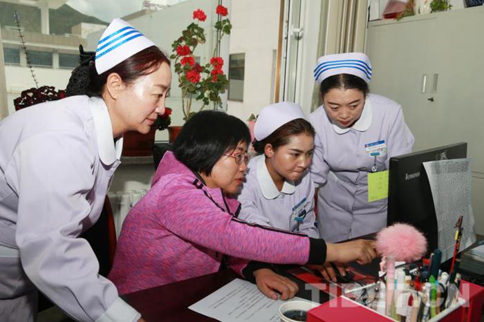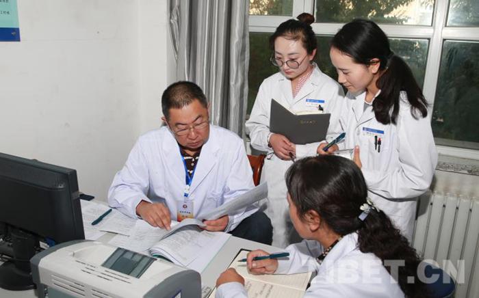 圖為援青醫(yī)療干部在醫(yī)院指導(dǎo)工作