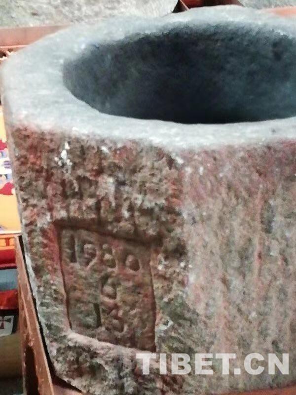 圖為用來(lái)?yè)v藏藥材的石臼。
