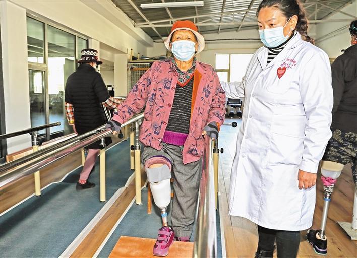 圖為西藏自治區(qū)殘疾人康復服務中心的工作人員在幫助殘疾人進行康復訓練。記者 唐斌 洛桑 攝
