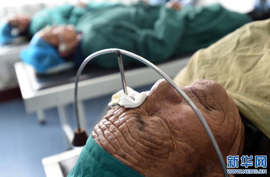 白內(nèi)障患者在拉薩光明眼科康復診療院等待手術(2019年10月25日攝)。新華社記者 覺果 攝