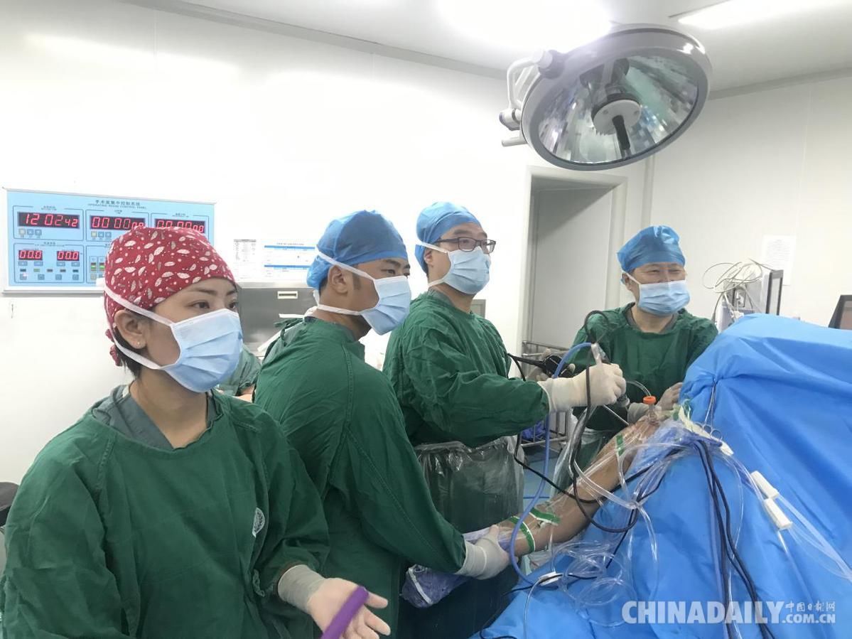 程序醫(yī)生和西藏自治區(qū)人民醫(yī)院醫(yī)生一道開展肩袖撕裂鏡下手術(shù)。中國日?qǐng)?bào)達(dá)窮攝