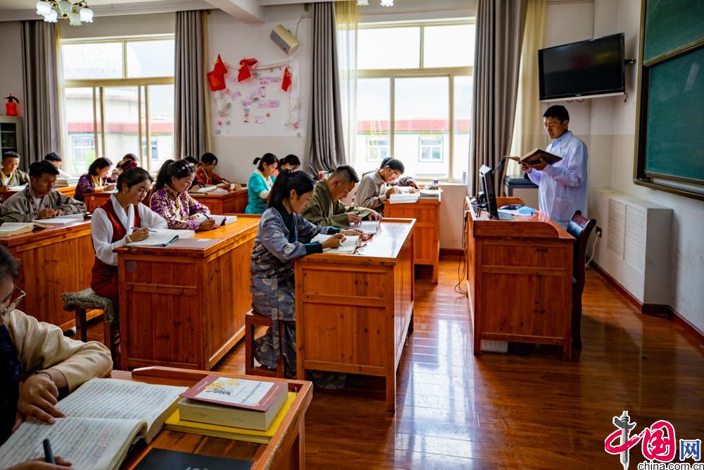 西藏藏醫(yī)藥大學(xué)建校之初,僅有1個(gè)藏醫(yī)學(xué)專業(yè)。隨后2001年設(shè)置藏藥專業(yè),2018年設(shè)置護(hù)理學(xué)和市場(chǎng)營(yíng)銷學(xué)專業(yè),2020年設(shè)置中(藏)西臨床醫(yī)學(xué)、中(藏)藥制藥專業(yè)。2019年藏醫(yī)學(xué)、藏藥學(xué)專業(yè)入選省級(jí)一流本科專業(yè)。2021年藏醫(yī)學(xué)入選國(guó)家級(jí)一流本科專業(yè)建設(shè)點(diǎn)。至此,學(xué)校形成了以藏醫(yī)學(xué)國(guó)家級(jí)一流本科專業(yè)建設(shè)點(diǎn)為引領(lǐng),以藏醫(yī)學(xué)、藏藥學(xué)2個(gè)省級(jí)一流專業(yè)建設(shè)點(diǎn)為支撐,以藏醫(yī)學(xué)、藏藥學(xué)、護(hù)理學(xué)、市場(chǎng)營(yíng)銷、中(藏)西臨床醫(yī)學(xué)、中(藏)藥制藥6個(gè)本科專業(yè)為基礎(chǔ)的發(fā)展新格局。圖為西藏藏醫(yī)藥大學(xué)學(xué)生正在上課。中國(guó)網(wǎng)記者 鄭亮攝