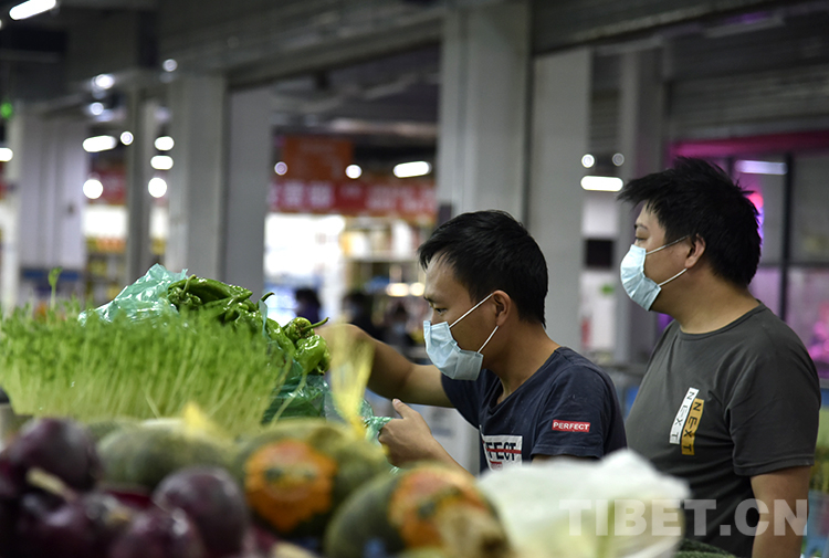 圖為8月9日,市民在拉薩柳梧農(nóng)貿(mào)市場挑選蔬菜 攝影:王媛媛