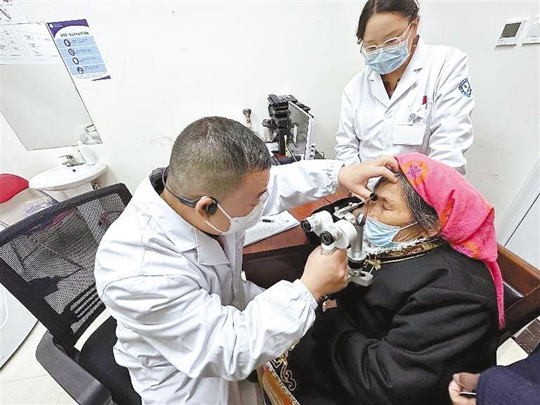 圖為義診專家為眼疾群眾作檢查。 記者 謝筱純 王珊 實(shí)習(xí)生 蓋姝博 攝