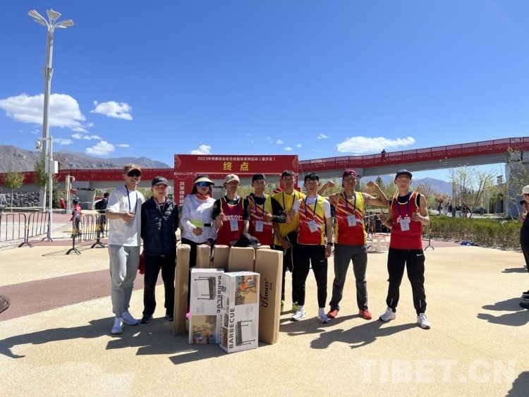 隨后其他組也紛紛來到終點,憑自己的名次到各個領(lǐng)獎處拿獎勵,拍紀(jì)念照,現(xiàn)場十分熱鬧?!拔覀兪潜备叩膶W(xué)生,通過體育老師得知這個活動,便報名參賽,活動很有意義,不僅對強身健體有幫助,還能帶動全民健身的氛圍,”在健步走活動中獲得第六組第一名的拉薩市北京高級中學(xué)學(xué)生旦增美朗說。