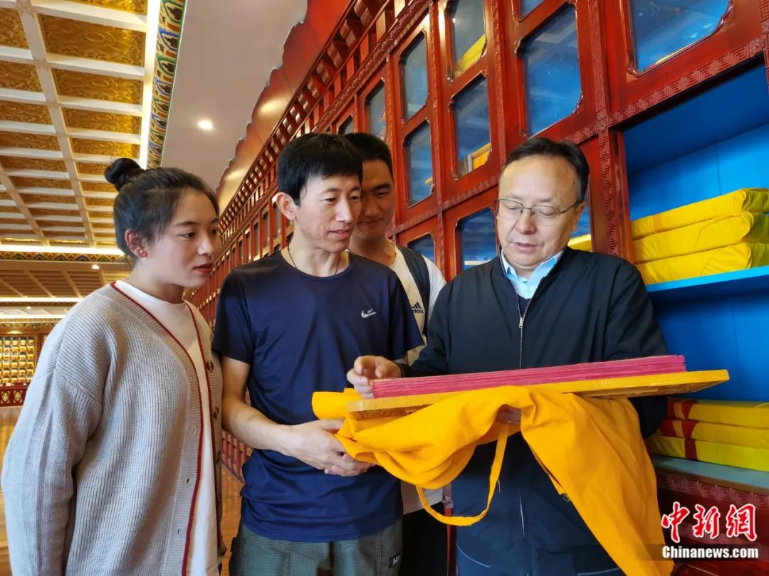 李先加介紹藏醫(yī)藥典籍。受訪者供圖