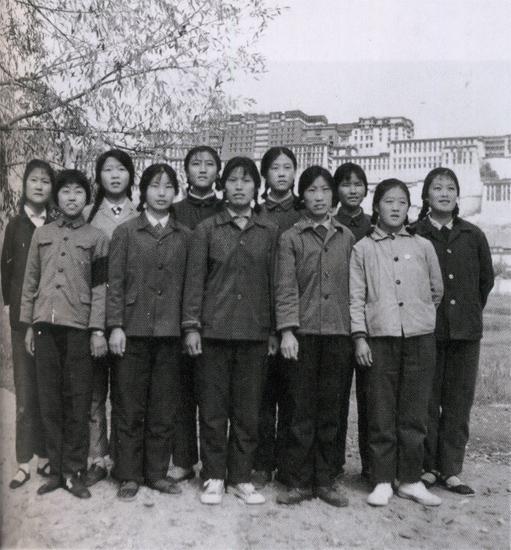 1976年10月來(lái)到拉薩,和山東女同學(xué) 在布達(dá)拉宮前合影。左后一為作者。攝影/陳宗烈 沈晶