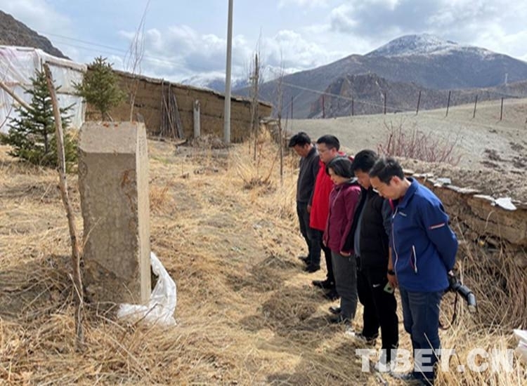 中心昌都采訪組一行在洛隆縣義章寺烈士紀(jì)念碑前肅立默哀。這塊紀(jì)念碑是1959年中國人民解放軍駐西藏部隊西藏平叛后設(shè)立的一座紀(jì)念碑。