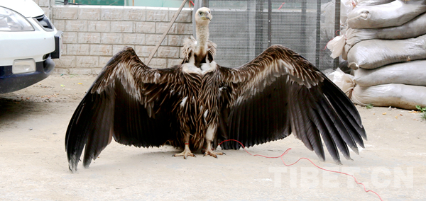 過了一會兒,正在路邊施工的工人發(fā)現(xiàn)了我,他們立即打電話。后來我才知道,他打到了丹巴縣環(huán)林局野??疲ㄟ@可是專門負(fù)責(zé)保護(hù)動物的機(jī)構(gòu)喔)。隨后,就見有穿制服的工作人員來了,救星??!他們給我檢查了身體,發(fā)現(xiàn)了我右爪脫臼傷情,就把我?guī)Щ氐搅说ぐ蜕止簿帧?/p>