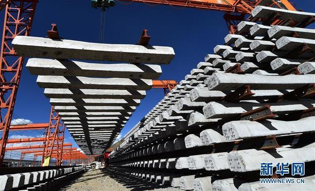 2018年9月19日,在位于西藏拉薩曲水縣的中鐵十一局三公司協(xié)榮鋪架基地,用于架設(shè)川藏鐵路拉薩至林芝段(拉林鐵路)的首批軌排完成生產(chǎn)下線。覺果 攝