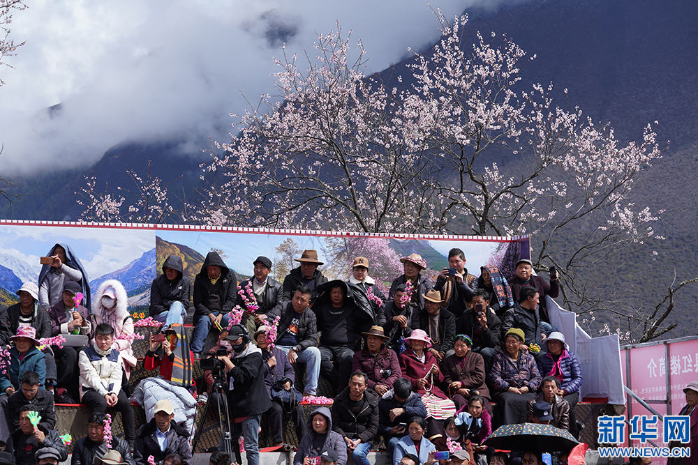 4月3日,林芝市第17屆桃花旅游文化節(jié)波密分會(huì)場(chǎng)開(kāi)幕式上的觀眾。新華網(wǎng) 達(dá)娃 攝