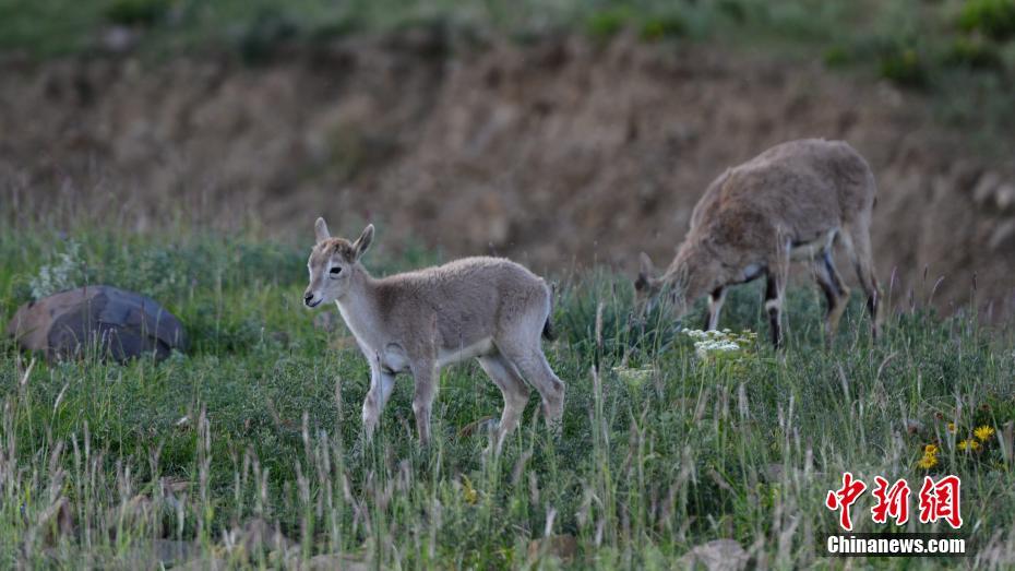 9月2日,西藏山南羊卓雍錯(cuò)湖畔,一只小藏原羚和同伴一起出來覓食。西藏近年來不斷加大環(huán)保力度,當(dāng)?shù)丨h(huán)境日益趨好,野生動(dòng)物種群逐漸恢復(fù)。中新社記者 江飛波 攝