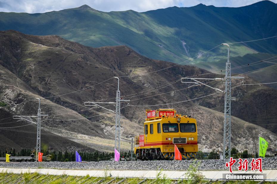 7月6日,川藏鐵路拉薩至林芝段(簡稱“拉林鐵路”)接觸網(wǎng)專業(yè)首件工程在西藏山南市扎囊至扎其區(qū)間成功建成,這為全線施工確定了規(guī)范和標準,至此拉林鐵路也進入了全線電氣化大規(guī)模施工階段。 拉林鐵路正線全長435.48公里,是西藏首條電氣化鐵路,正線共需架設接觸網(wǎng)540.63條公里,設計時速160公里。中新社記者 何蓬磊 攝
