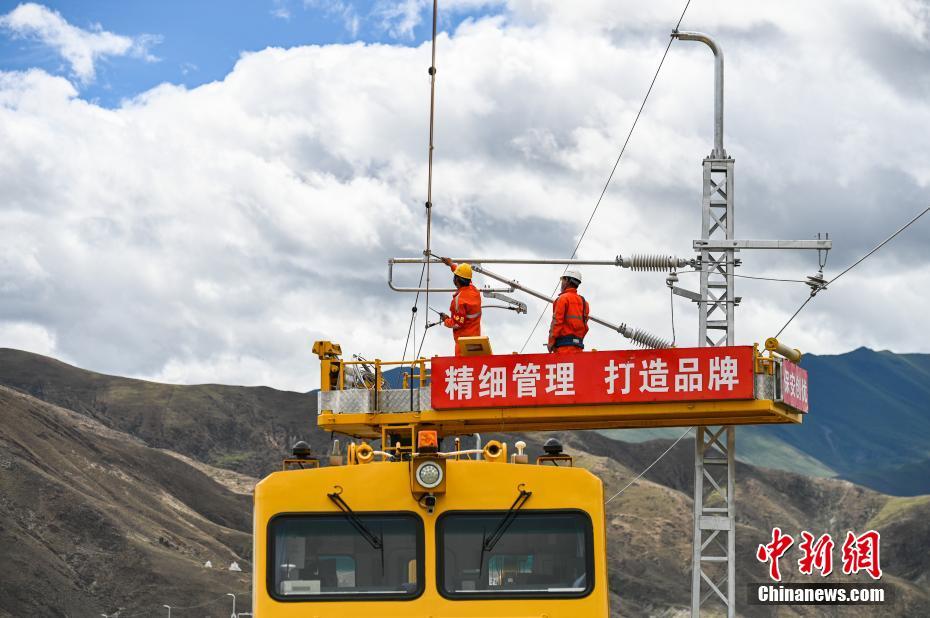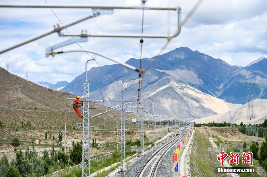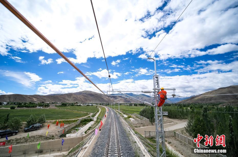 7月6日,中國中鐵電氣化局施工人員對拉林鐵路接觸網(wǎng)專業(yè)首件工程進行復檢。當日,川藏鐵路拉薩至林芝段(簡稱“拉林鐵路”)接觸網(wǎng)專業(yè)首件工程在西藏山南市扎囊至扎其區(qū)間成功建成,這為全線施工確定了規(guī)范和標準,至此拉林鐵路也進入了全線電氣化大規(guī)模施工階段。 拉林鐵路正線全長435.48公里,是西藏首條電氣化鐵路,正線共需架設接觸網(wǎng)540.63條公里,設計時速160公里。中新社記者 何蓬磊 攝