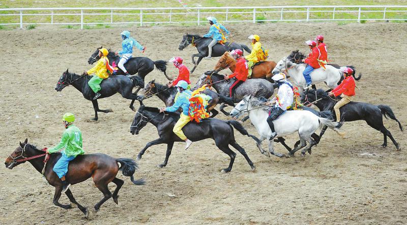 8月8日,選手在賽馬比賽中。新華社記者 普布扎西 攝