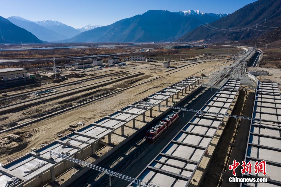 12月31日,中鐵十一局軌道車通過鋪設(shè)完成的拉林鐵路林芝站。當(dāng)日,在西藏林芝市尼洋河畔的新建林芝火車站,川藏鐵路拉薩至林芝段(拉林鐵路)最后一段軌排順利鋪設(shè),這標(biāo)志著拉林鐵路399.61公里的正線軌道全部鋪通,西藏東南地區(qū)結(jié)束無鐵路歷史。拉林鐵路起自西藏自治區(qū)首府拉薩,終點(diǎn)為林芝市,正線全長435.5公里,新建正線403.1公里,系西藏首條電氣化鐵路,設(shè)計(jì)行車速度為160km/h,全線計(jì)劃于2021年6月30日建成通車。(無人機(jī)照片)中新社記者 何蓬磊 攝