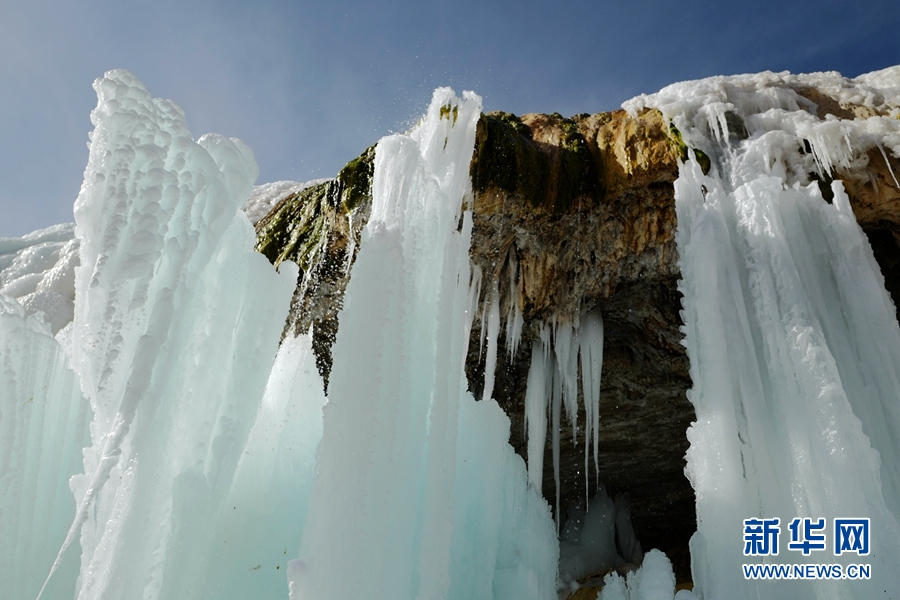 圖為崗什卡雪峰腳下的冰瀑。新華網(wǎng)發(fā)(成林 攝)