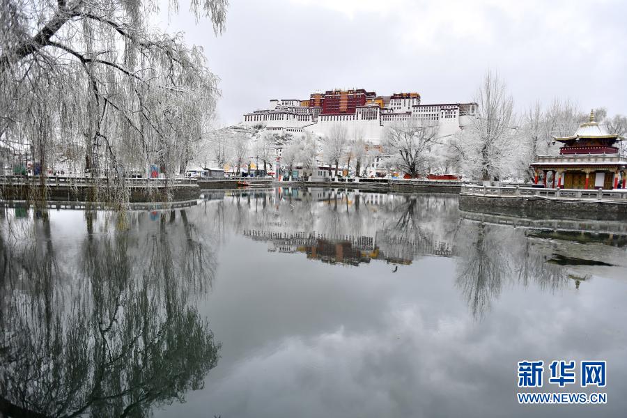 3月14日拍攝的雪中的布達拉宮。新華社記者 孫瑞博 攝