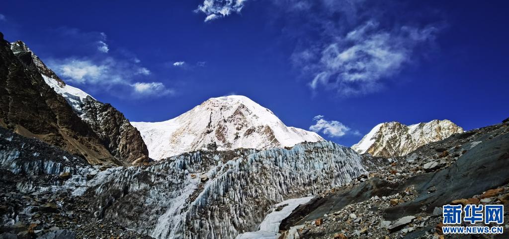 窮母崗日峰海拔7048米,位于西藏自治區(qū)中部的尼木縣境內。窮母崗日峰腳下存有大面積冰川,形成壯麗的冰川地貌,在陽光的照射下發(fā)出瑰麗的光彩。