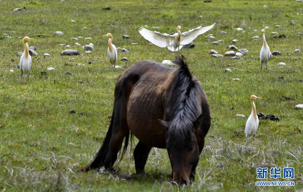 5月23日,牛背鷺在易貢國家地質(zhì)公園棲息。新華社記者 張汝鋒 攝