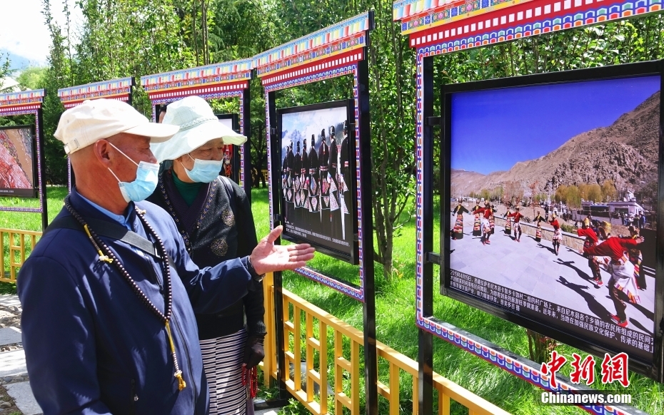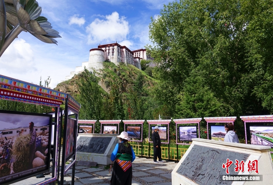 8月26日,參觀者在拉薩市宗角祿康公園欣賞“西藏·70——慶祝西藏和平解放70周年影像展”。該展覽分為“波瀾壯闊的歷史進程”“新時代的輝煌成就”兩部分,編選了時間跨度達70年的200余幅攝影作品,集中展現(xiàn)了西藏70年來社會發(fā)展巨變、輝煌建設成就和西藏各族人民的幸福安康生活。 中新社記者 冉文娟 攝