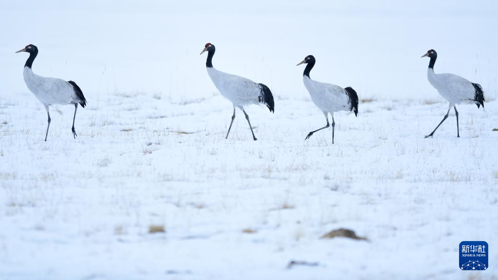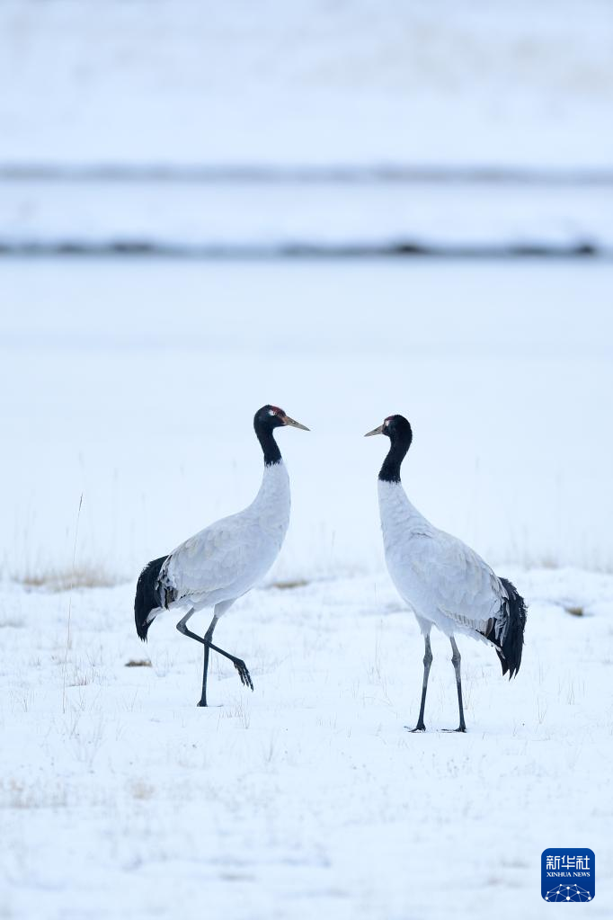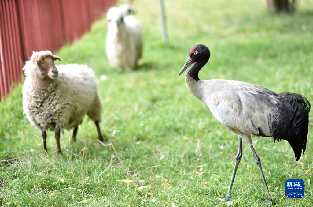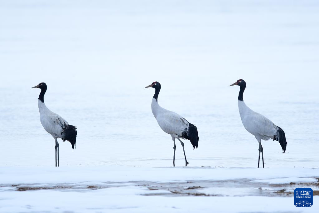 10月21日在三江源國(guó)家公園黃河源園區(qū)內(nèi)拍攝的黑頸鶴。新華社記者 張龍 攝
