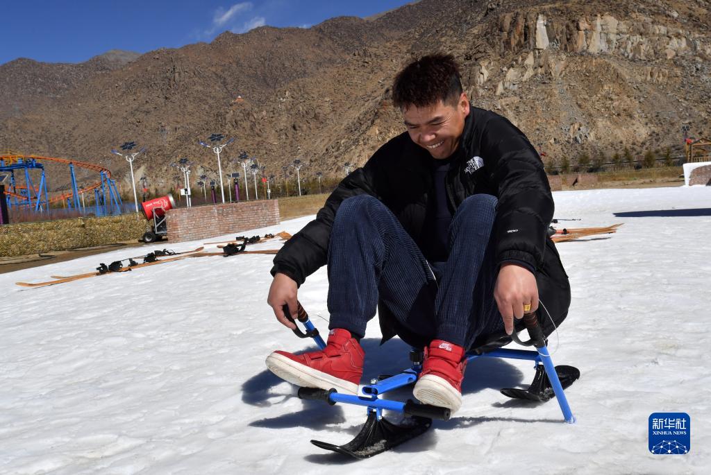 近日,西藏拉薩郊區(qū)一游樂場開設(shè)冰雪運(yùn)動體驗(yàn)場,讓更多人感受冰雪的樂趣。