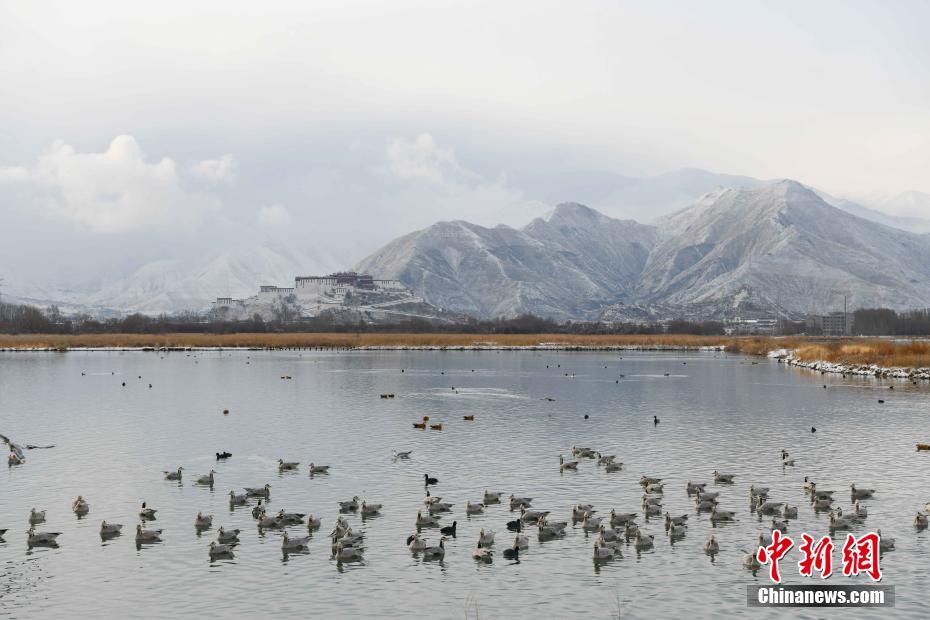 2月21日,從拉魯濕地遠眺布達拉宮。當日,西藏拉薩市迎來降雪,雪后的拉薩城區(qū)和周圍群山白雪皚皚,風景如畫。 中新社記者 貢嘎來松 攝