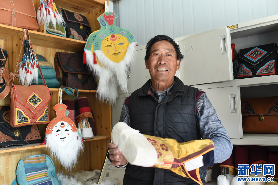 2月24日,曲水俊巴民族手工皮具制作傳承人次仁在展示皮具產品。新華網 旦增努布 攝