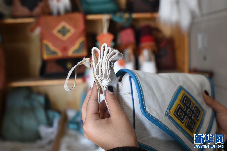 曲水俊巴民族手工皮具制作專業(yè)合作社設計的伸縮包。(2月24日攝)新華網 旦增努布 攝