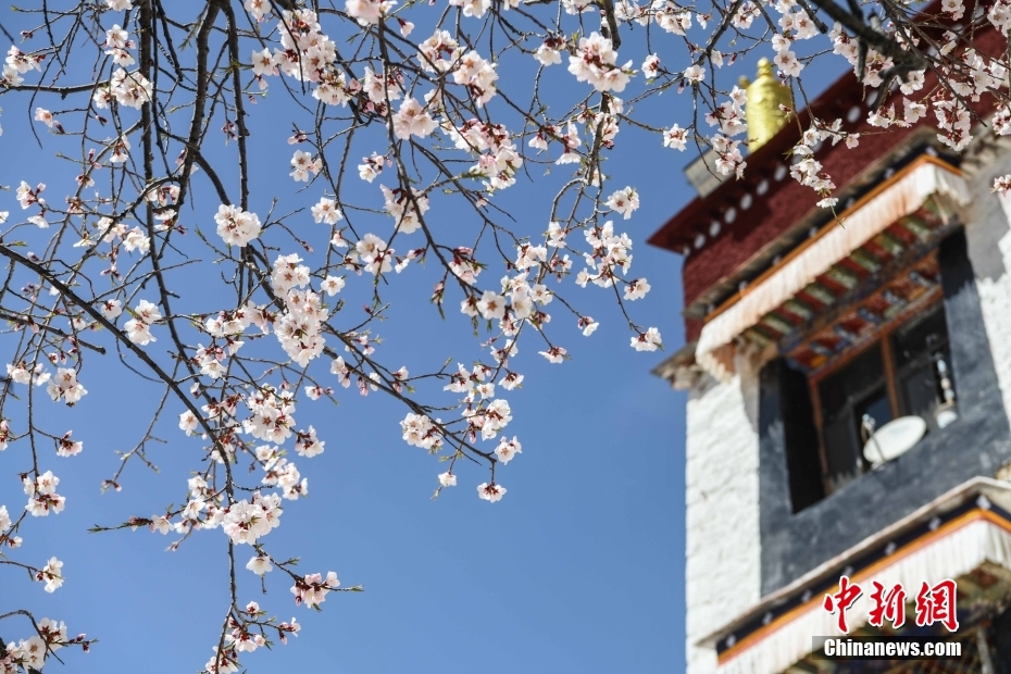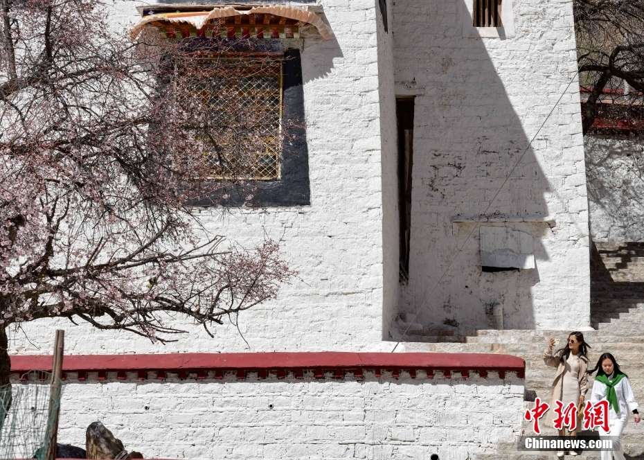 3月28日,位于拉薩北部山坳里的古剎帕邦喀,桃花盛開,春意濃濃。 中新社記者 貢嘎來松 攝