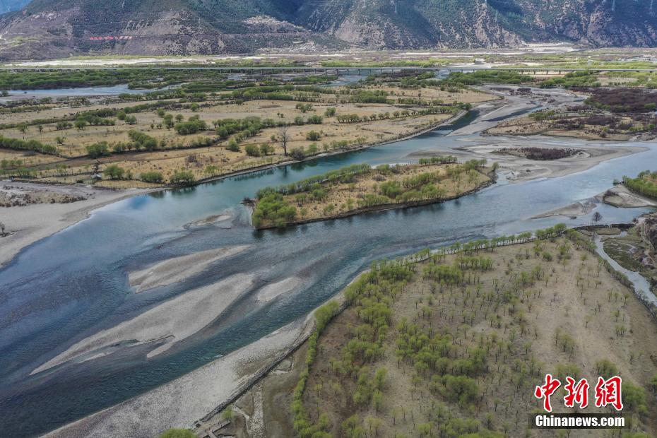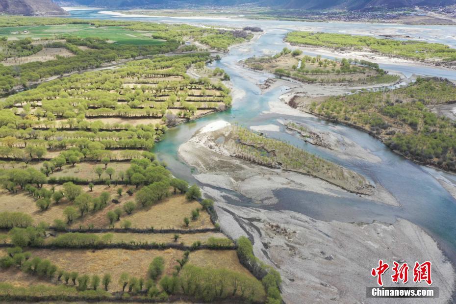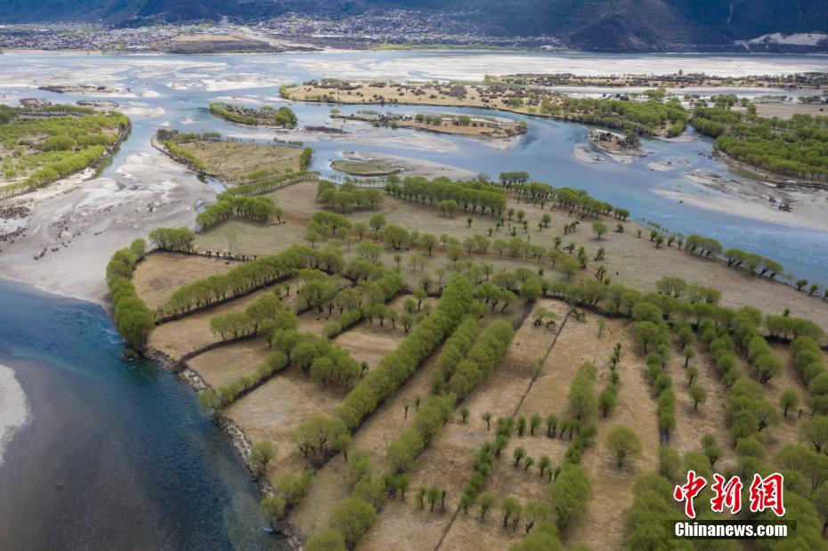 3月31日,西藏自治區(qū)林芝市雅尼國(guó)家濕地公園的春日風(fēng)光。雅尼國(guó)家濕地公園生態(tài)保護(hù)區(qū)位于林芝市巴宜區(qū)和米林縣境內(nèi)的雅魯藏布江與尼洋河交匯處。(無人機(jī)照片) 中新社記者 貢嘎來松 攝