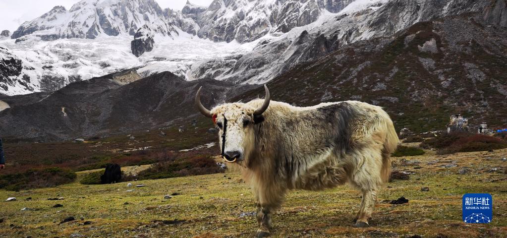 這是4月30日拍攝的庫(kù)拉崗日雪山前的牦牛。新華社記者 沈虹冰 攝