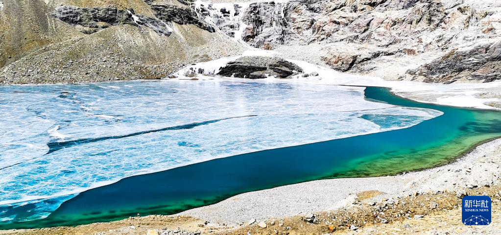 這是瓊穆崗嘎冰川上的一處冰湖(手機(jī)照片,2月20日攝)。新華社記者 沈虹冰 攝