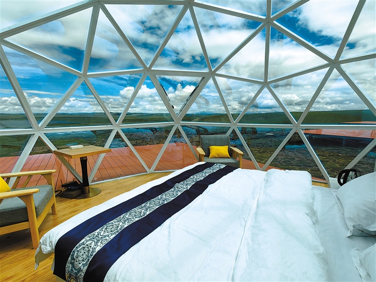 圖為夯錯濕地暗夜星空景區(qū)內設置的觀景設備(8月25日攝)。新華網(wǎng)發(fā) 蘇思源 攝