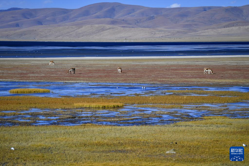 這是10月25日拍攝的羊卓雍錯和日托寺。新華社記者 姜帆 攝