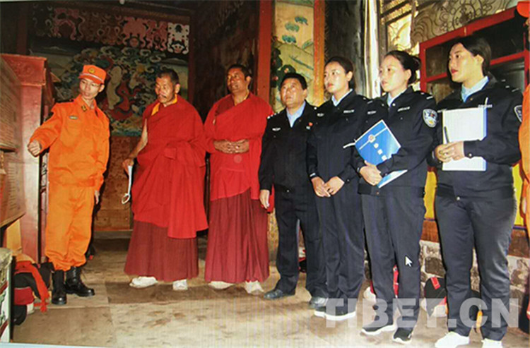 圖為今年3月份強巴林寺的消防安全檢查。圖片由強巴林寺寺管會提供。