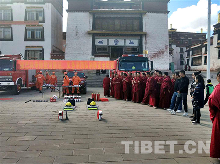 圖為2017年10月8日,強巴林寺開展義務消防安全培訓。圖片由強巴林寺寺管會提供。