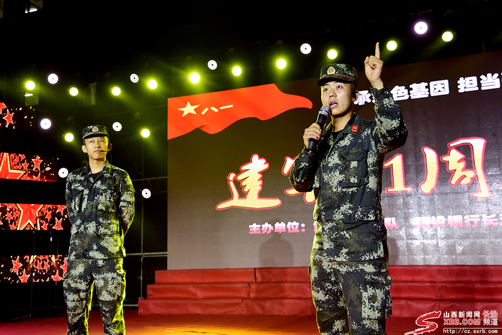 圖為2018年7月27日晚,陜西省長治市武警長治支隊舉辦“傳承紅色基因,擔(dān)當(dāng)強軍重任”慶祝建軍91周年文藝晚會。整場晚會節(jié)目精彩紛呈、激情洋溢,既表現(xiàn)了武警官兵積極進取、奮發(fā)向上的精神風(fēng)貌,又展現(xiàn)了新時期“軍民一家親,魚水不分離”的良好軍民共建關(guān)系,奏響了軍民共建的和諧樂章。圖片來源:山西新聞網(wǎng)